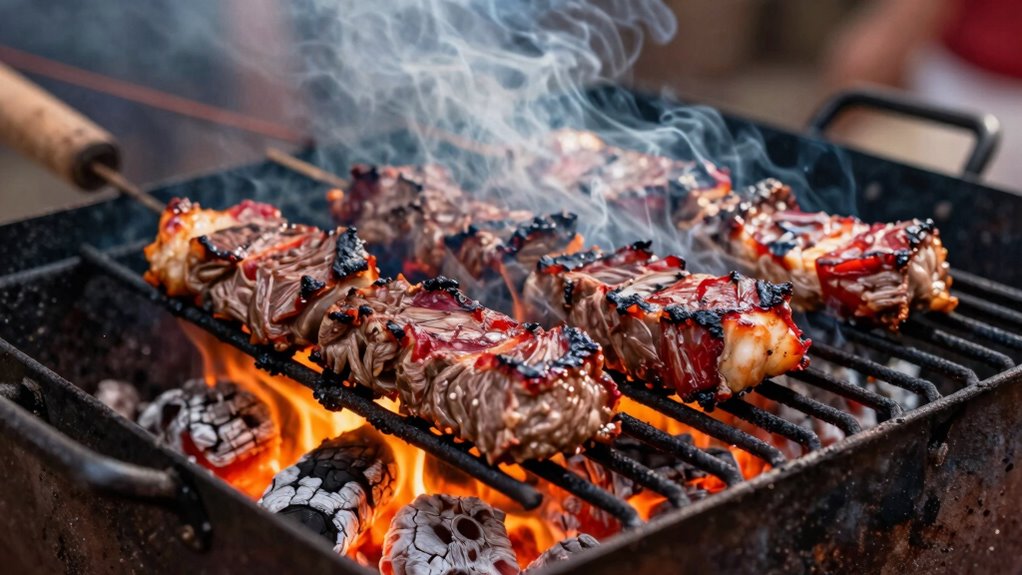 You’ll find Argentine grills traditionally built with materials like brick, clay, and metal, showcasing Argentine craftsmanship. These materials guarantee durability and excellent heat retention, essential for authentic asados. The use of clay and brick highlights cultural significance, reflecting the country’s artisanal skills. Metal parts like iron grates are also common, combining practicality with tradition. This blend of materials creates a grill that’s both functional and rich in cultural heritage.