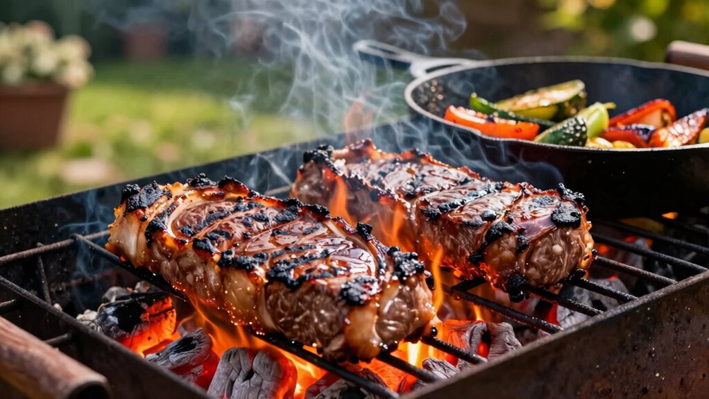 When it comes to outdoor cooking, understanding the role of direct heat can make a big difference in how your food turns out. Direct heat is fundamentally placing your food directly over the flames or hot coals, creating a high-temperature environment that’s perfect for certain techniques. If you want to achieve that perfect sear on your steaks or bring out vibrant flavors in your vegetables, direct heat is your best friend. It allows you to quickly lock in juices and develop a flavorful crust, which is crucial for searing steaks. When you place a steak directly over the heat, it cooks rapidly on the outside, forming a caramelized crust while keeping the inside tender and juicy. This method not only enhances flavor but also creates that appealing, smoky aroma that outdoor cooking is known for.