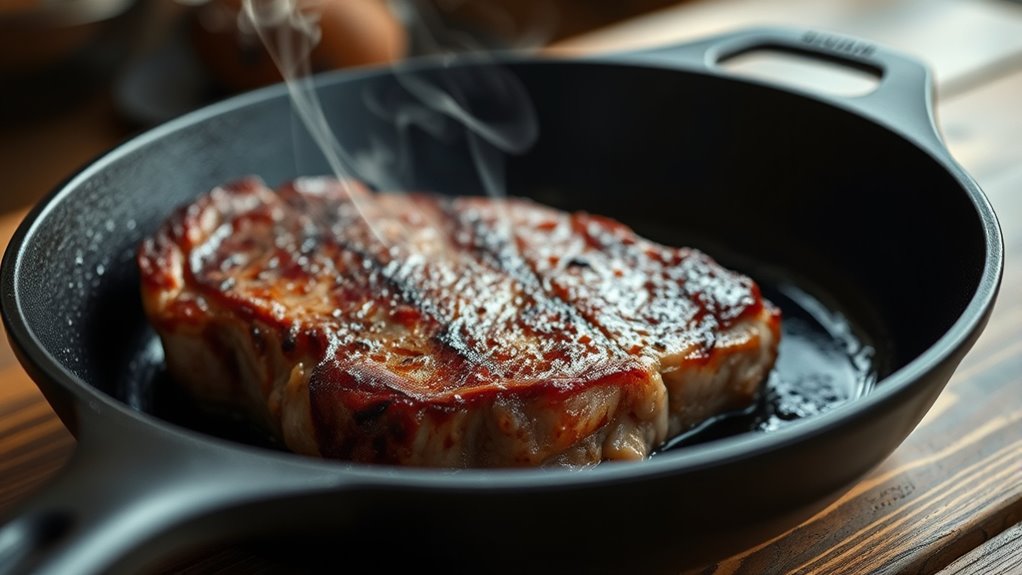 Reverse smoking enhances meat tenderness and juiciness by promoting marbling enhancement and moisture retention. As you cook at low temperatures first, the meat gradually absorbs heat, allowing fat to break down and distribute evenly. When you finish with a sear, it locks in these juices while creating a flavorful crust. This method results in a more tender, juicy bite, with improved marbling that elevates the overall eating experience.