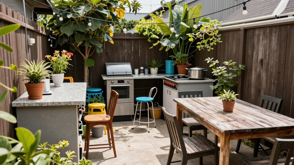 In addition, neglecting these details can lead to a cluttered and uninviting atmosphere. Overcrowding the space with too many tables, chairs, or decorative elements can make it feel smaller and less comfortable. Keep the design simple and functional, ensuring that each piece serves a purpose. When you pay attention to lighting ambiance and seating arrangements, you’ll create a welcoming environment that feels spacious and enjoyable, even in a smaller outdoor area. By avoiding these common mistakes, your backyard will become a true oasis where friends can relax and have fun without feeling squeezed in.