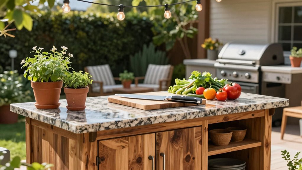 Investing in weatherproof and durable outdoor materials can significantly extend the lifespan of your prep area and reduce maintenance needs, making your outdoor kitchen more enjoyable year-round. Ultimately, the value of a well-designed prep space often goes unnoticed because it’s not as glamorous as a fancy grill or a built-in smoker. But without enough space to work comfortably, your outdoor cooking experience suffers. Good outdoor storage, combined with weatherproof materials, creates an environment where your prep area can truly shine—making your outdoor kitchen more efficient, enjoyable, and ready for any occasion. When you give this area the attention it deserves, it transforms from an afterthought into the backbone of your outdoor culinary adventures.