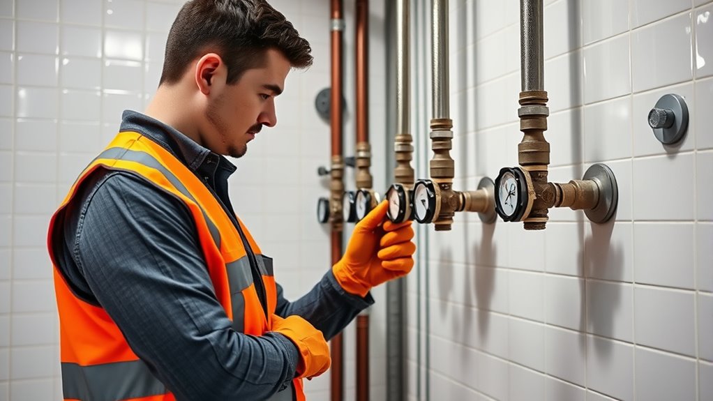 Planning your gas line layout carefully is essential to guarantee safety, efficiency, and compliance with codes. Start by designing a clear, logical route that minimizes bends and long runs, reducing pressure loss. Proper regulator installation is crucial; place regulators where pressure needs to be controlled, and ensure they’re accessible for maintenance. Incorporate gas leak detection methods, such as installing gas detectors or using soap bubble tests during installation, to catch leaks early. Use appropriate materials and follow local codes to prevent future issues. Label all shutoff valves clearly for quick access. Consider future expansion needs, but prioritize safety and code adherence at every step. With careful planning, you’ll ensure a reliable, safe gas system that operates efficiently and can be maintained easily. Always review local building codes and permits to ensure your installation complies with regulations and safety standards.