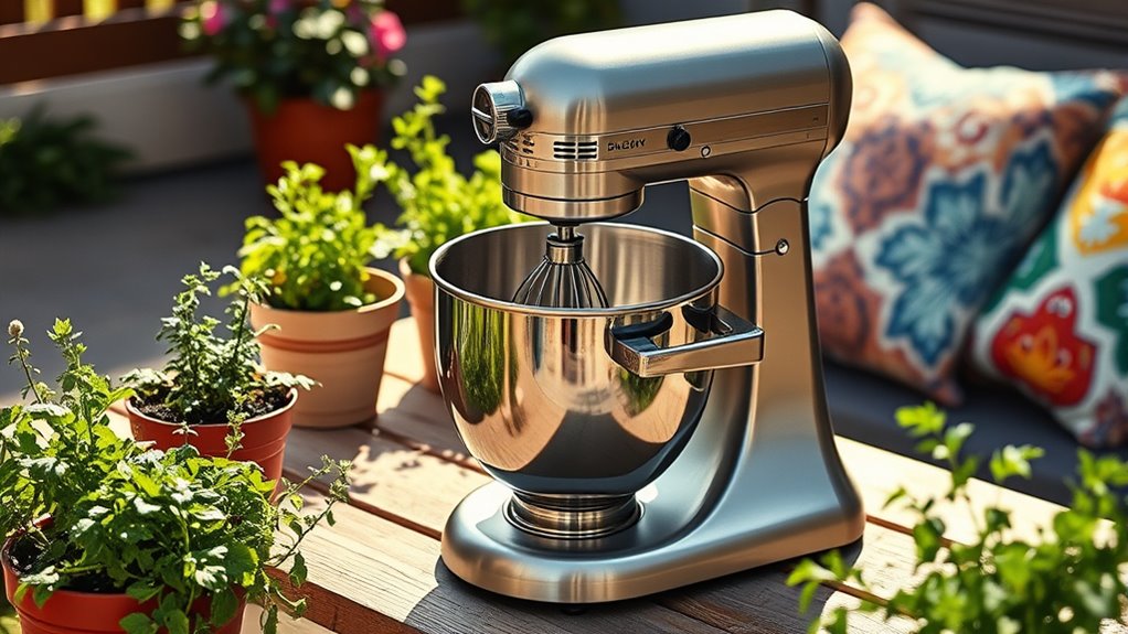 Choosing the right dough mixer is like finding the perfect garden tool—you want power, precision, and space to grow. With the right fit, your small patio becomes a fertile ground for baking dreams to flourish. Remember, the right mixer isn’t just a device; it’s the seed of your culinary future. Pick wisely, and watch your passion blossom into delicious creations, turning your cozy patio into a haven of homemade delights.