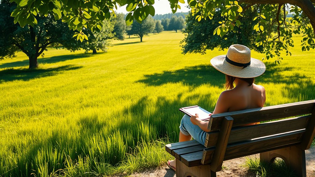 As the seasons change, so does the position and intensity of the sun, making it essential to adjust your shade solutions accordingly. Regular sun path analysis helps you understand how sunlight shifts throughout the year, guiding your adjustments. Seasonal pruning is also key; trimming trees and shrubs at the right times can control shade and sunlight exposure, preventing overgrowth or excessive openness. Keep track of how sunlight hits your landscape during different seasons and modify your shade devices—like awnings, screens, or plantings—accordingly. This ongoing process guarantees your outdoor space remains comfortable and protected from harsh rays year-round. By staying attentive to seasonal changes, you optimize your shade strategies for maximum effectiveness and comfort. Incorporating seasonal plant management can further enhance your outdoor shade plan by naturally adjusting sunlight levels based on plant growth cycles.